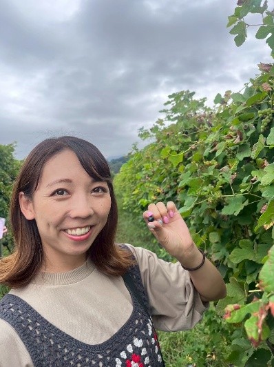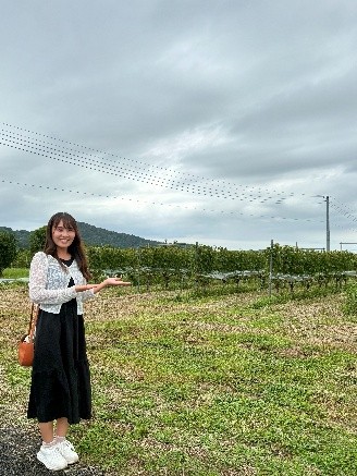 最後に訪れたのは、「つくばワイナリー」さん。広大なぶどう畑に、約7,000本・8種類のぶどうが実る光景はまさに壮観です。